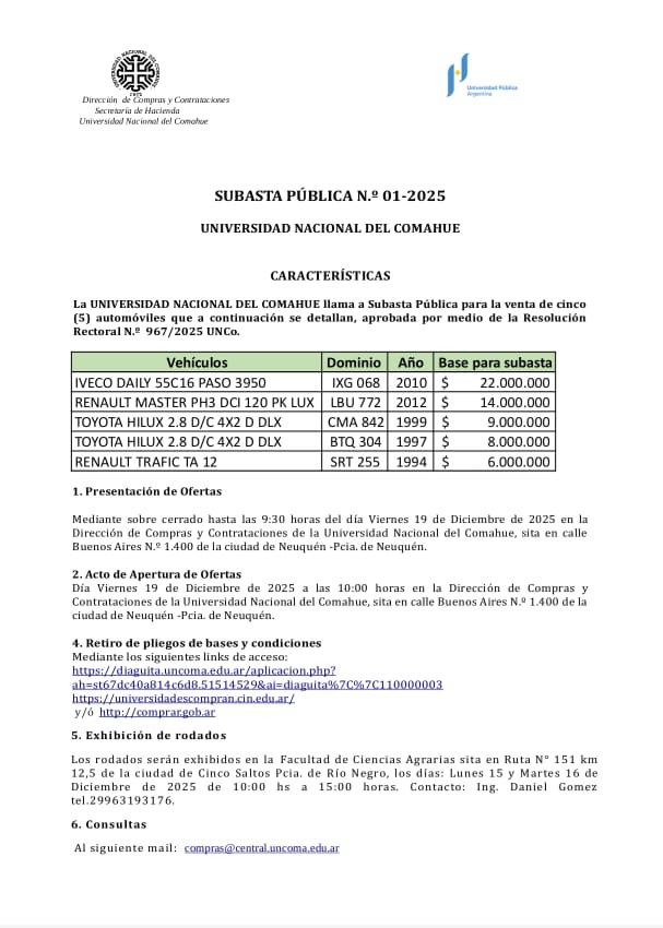 Convocatoria a subasta de cinco vehículos