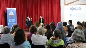 Anahí Mariluán presentó “Flor amiga de diez guanacos” en el Aula Magna, y Mónica Bussman dirigió el taller “Libromancia”. La agenda continuó con “Tiempo para conocernos. Encuentro literario escolar”, coordinado por Mariana Aramburu. Luego, Sergio Suárez presentó “Deuda interna” y Adrián Moyano compartió “Sable alemán, lanzas mapuches”.