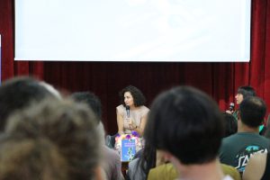 Estuvo presente en la última jornada de la Feria, en un Aula Magna con más de 100 personas. Junto a la escritora Lucía Higuera, conversó también sobre la enorme repercusión de su primera novela y la censura. Además, respondió preguntas del público y dialogó con los y las presentes.