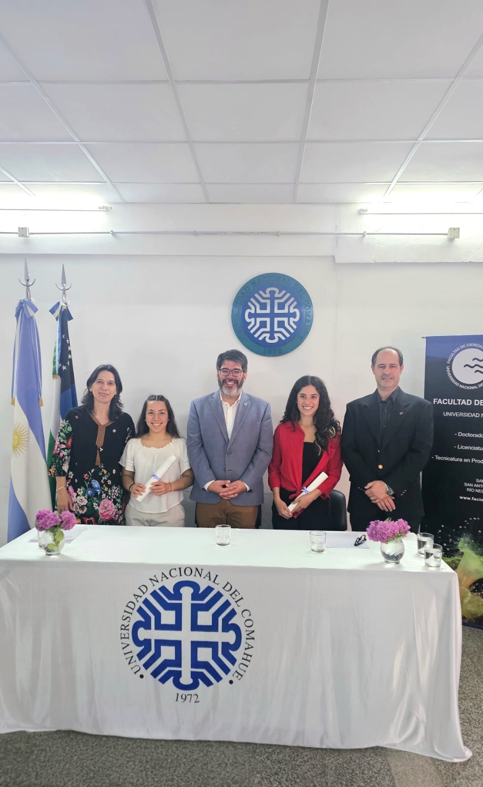 En la sede de la UNCo de San Martín de los Andes, la ceremonia la encabezaron la rectora Beatriz Gentile, el vicerrector Paúl Osovnikar, el director del CRUSMA, Ariel Mortoro y el decano de la Facultad de Turismo, Carlos Espinosa.