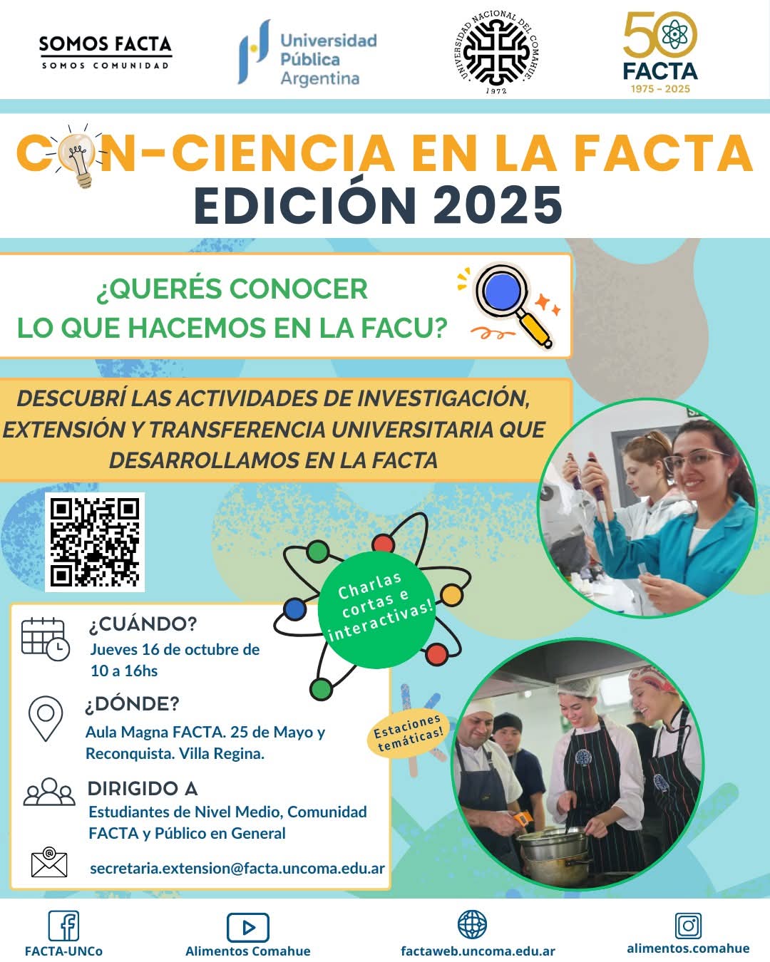 La actividad forma parte de una serie de iniciativas impulsadas por la FACTA para acercar la ciencia a la comunidad, promoviendo una alimentación consciente, sostenible y basada en evidencia. En palabras de sus organizadores, “la cocina es también un laboratorio, y cada alimento que elegimos tiene detrás una historia que merece ser contada y comprendida”.