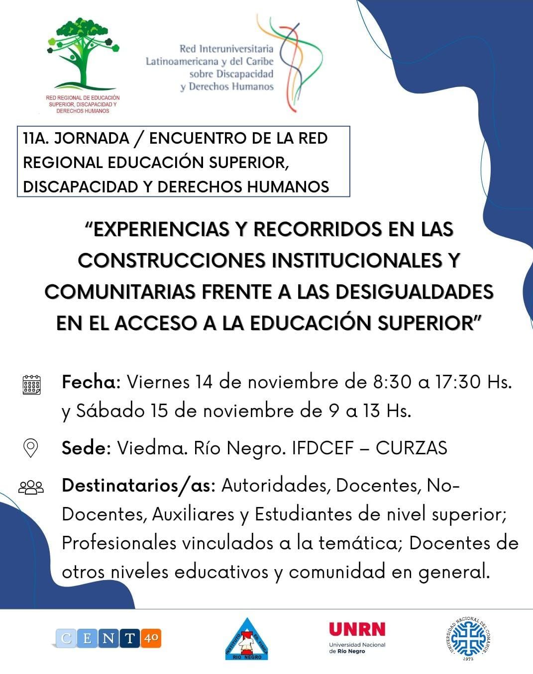 Los días 14 y 15 de noviembre de 2025, la ciudad de Viedma será sede de la 11° Jornada / Encuentro de la Red Regional de Educación Superior, Discapacidad y Derechos Humanos, un espacio clave para el fortalecimiento de las políticas inclusivas en el ámbito universitario. La Universidad Nacional del Comahue (UNCo), junto a otras instituciones patagónicas, será protagonista de este encuentro que busca renovar el compromiso colectivo con una educación superior que garantice el acceso pleno a los derechos humanos.