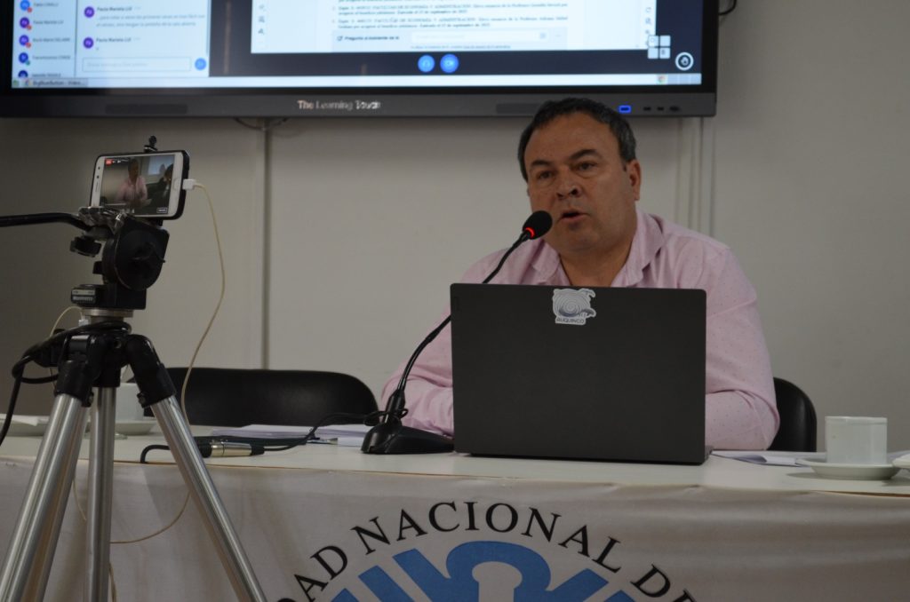 El vicerrector Paúl Osovnikar, que presidió la sesión, presentó ambos temas e informó sobre las gestiones realizadas y proyectadas por el Consejo Interuniversitario Nacional para que el Poder Ejecutivo dé cumplimiento a la ley de Financiamiento Universitario que quedó vigente tras el rechazo del Senado al veto del presidente Javier Milei. En ese sentido recordó que las universidades nacionales plantearon un presupuesto para el 2026 de 7,3 billones de pesos mientras que el Ejecutivo impulsa uno de 4,8 billones.