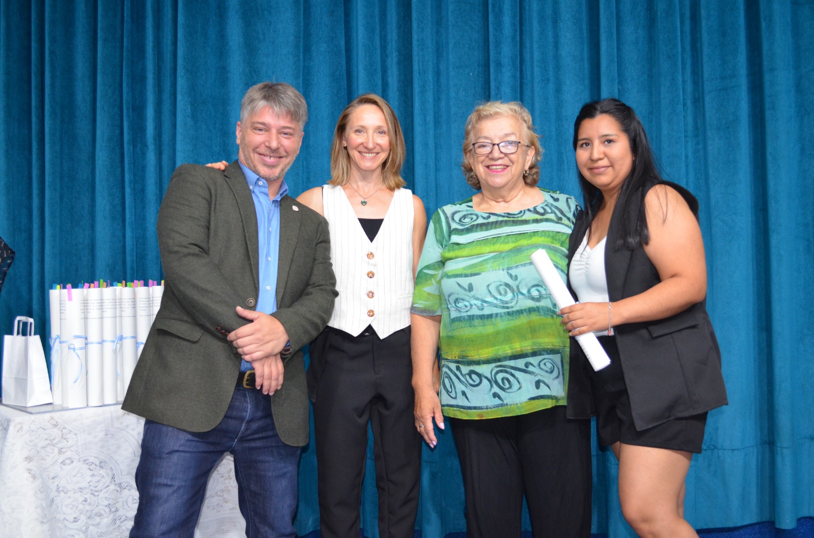 Por la tarde, en el auditorio de la Facultad de Turismo, se entregaron 17 diplomas a egresados y egresadas de esa unidad académica. El acto lo encabezó el decano, Carlos Espinosa y la secretaria de Ciencia y Técnica, Eugenia Rodríguez.