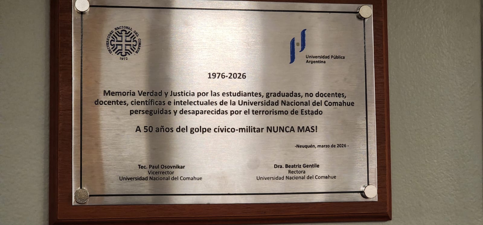 El acto cerró con el descubrimiento de una placa, ubicada en el acceso al Aula Magna Salvador Allende, que sella este homenaje a 50 años del golpe cívico militar.