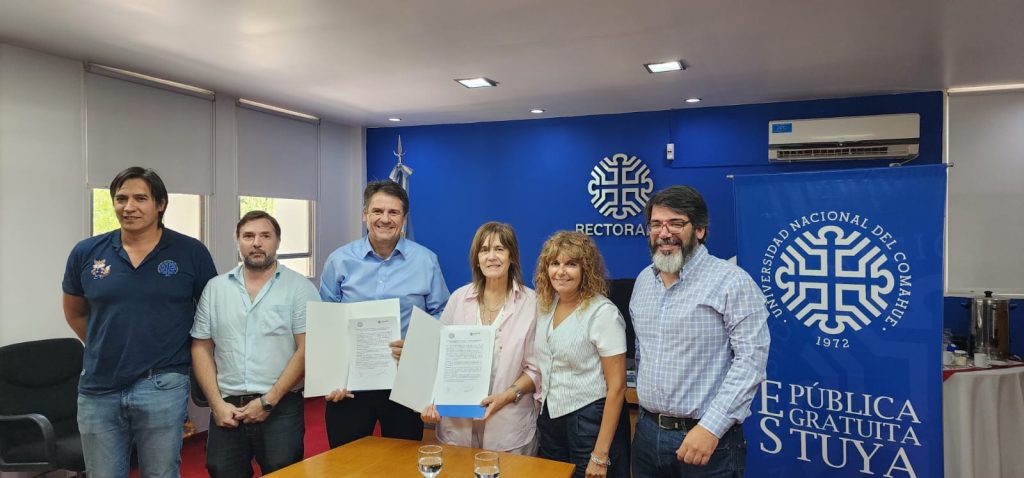 El acuerdo fue suscripto esta tarde por la rectora Beatriz Gentile y el intendente Mariano Gaido en un acto realizado en la sede de la UNCo.
