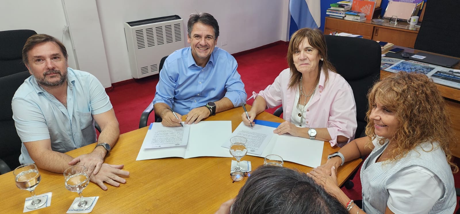 La rectora estuvo acompañada por el Secretario General, Santiago Nuñez, el de Bienestar Universitario, Alejo Simonelli y por el Coordinador de Deportes y Recreación, Alejandro Domínguez. En tanto el intendente Gaido estuvo acompañado por la Jefa de Gabinete, María Pasqualini.