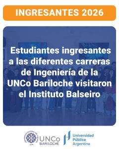 El Centro Regional Universitario Bariloche (CRUB) de la Universidad Nacional del Comahue (UNCo) abrió el ciclo de Talleres de Ingreso con una experiencia única para sus estudiantes ingresantes de las carreras de Ingeniería. La actividad se desarrolló en la ciudad de San Carlos de Bariloche, donde los jóvenes participaron de una visita guiada al prestigioso Instituto Balseiro, acompañado por el especialista Ramiro Sáenz y con la presencia del Vicedirector Rubén Sosa.